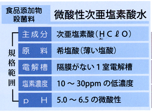食品添加物の指定を受けるほどの安全性微酸性電解水は食品添加物「殺菌料」に指定されています。 調理器具をはじめ、食材にも安心してご使用いただけます。 ※2002年官報 第3378号 ![]() |